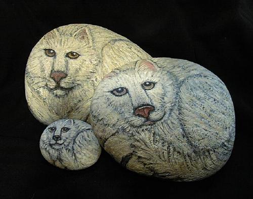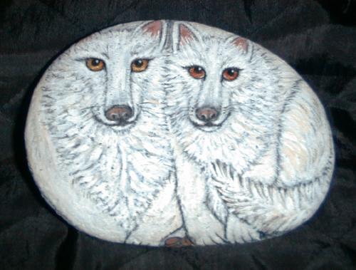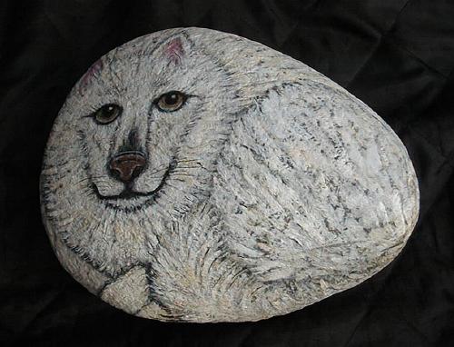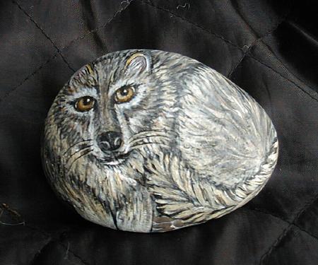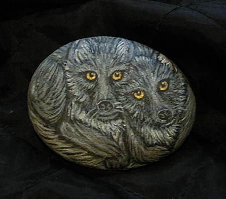 Below are some of the wolves that I painted on rocks.