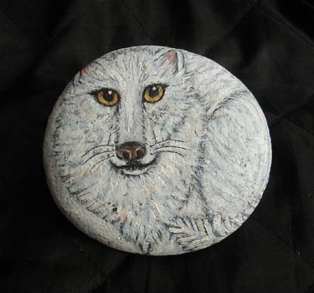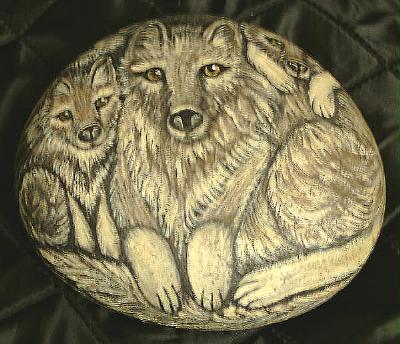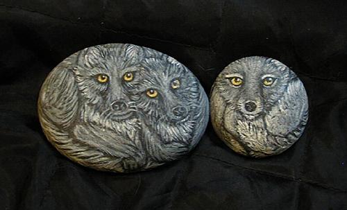 Below are some of the wolves that I painted on rocks.